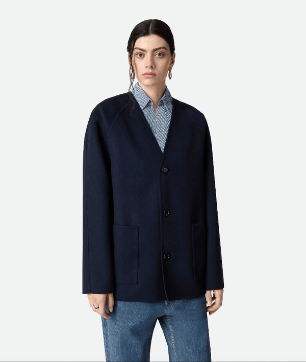 Veste trompe-l'œil en cachemire et laine Marine et noir “Barrie X Mackintosh”