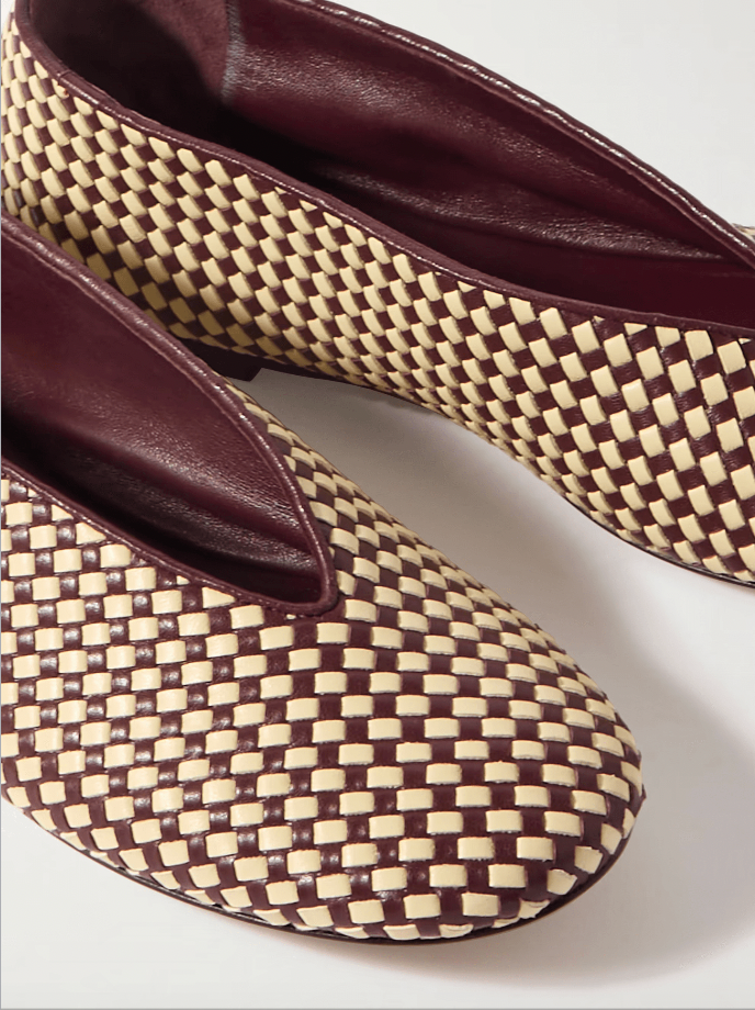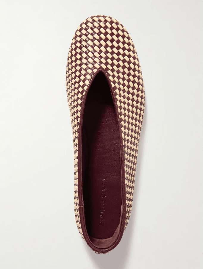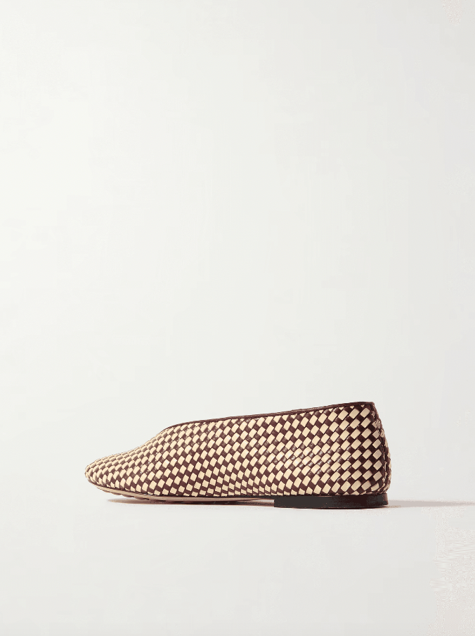 Ballerine à construction souple en cuir d'agneau tressé avec passepoil lisse.